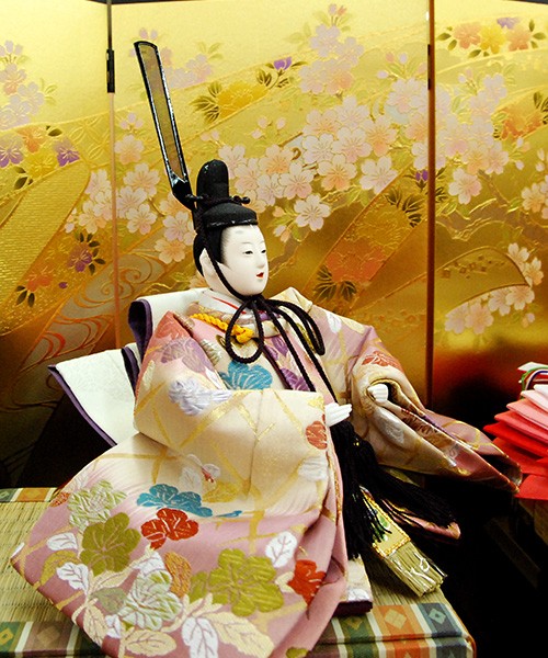 ・台座・屏風等には落ち着いた色目の雛人形セット。