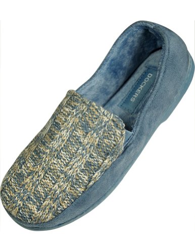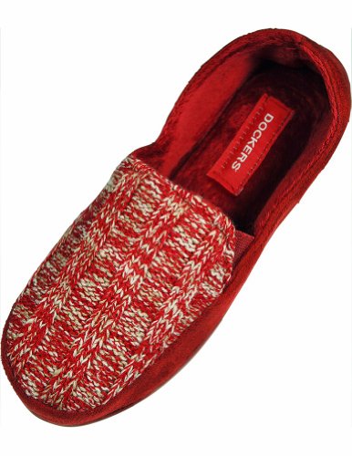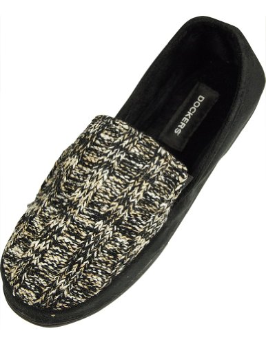 Product Description Dockers - Ladies Slipper, Black, Faux Suede Outer with Cable Knit Front Panel, Elastic PanelsFaux Fur Lining, Cushioned Footbed, Indoor Outdoor Non-Skid Sole, All Man Made Material, Made in China, #33630 33-630 0