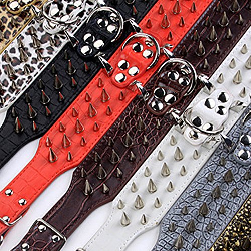 (Dogs Kingdom)/Pet Supplies/Collars, Harnesses Leashes/DIRECT FROM USA/Dogs Kingdom 20"-26" Length Sharp Silver Spiked Studded Pu Leather Dog Collar Metals Buckle D-R...