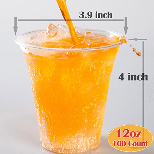 12 Oz. Clear Plastic Cups for Iced Coffee, Bubble Boba Tea, Smoothie (100 Count)