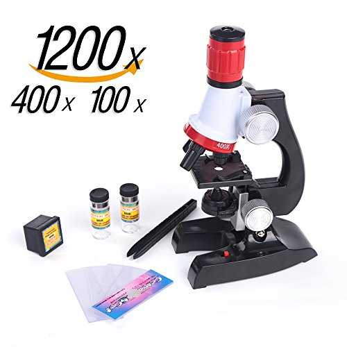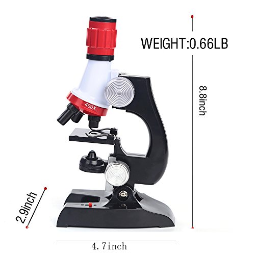 v.Beginner compound microscope provides high magnification for educational applications,100X, 400x, and 1200x Magnification.with LED lights, eyepiece can adjust focus, a perfect educational microscope kit