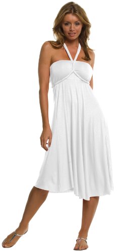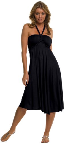 Elan USA Convertible Cinched Side Dress. This dress is convertable into many different sexy styles. Comes with instructions on how to change to the differnt styles. This is a fun dress! You can wear it so many different ways your friends will think you have a whole new wardrobe. Dress comes complete with guide for tying and styling in different ways. Material: 94% Rayon, 6% Spandex. Care (Wash) Instructions: hand wash cold water, do not use cholorine bleach, lay flat or hang to dry.Feature