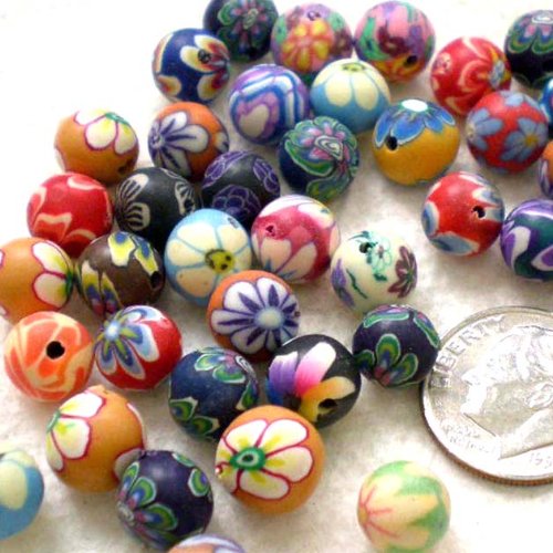 Beading Station 100-Piece BSI Colorful Polymer Clay Round Beads, 6mm