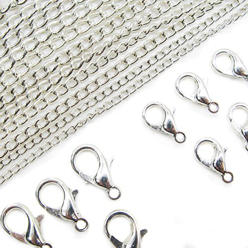 TOAOB Silver Lobster Clip And Curb Link Chain For Jewelry Making Necklace Pack of 7M