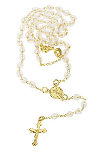 -. Title : Two Year Warranty Gold Overlay Rosary Cross Pendant with Simulated Pearls and Jesus Face Charm and an 18 Inch Necklace (T-1267)