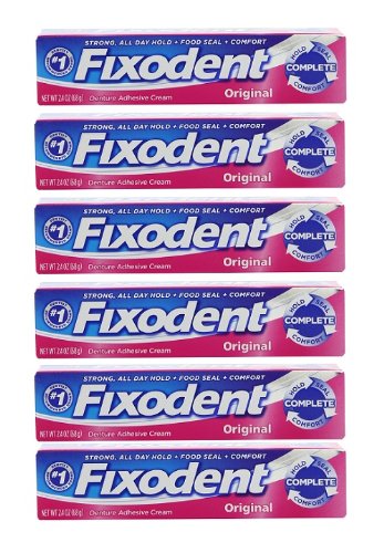 Fixodent Original Denture Adhesive Cream Complete Hold, Food Seal & Comfort. Strong Hold All Day Long 6 Tubes of 2.4oz