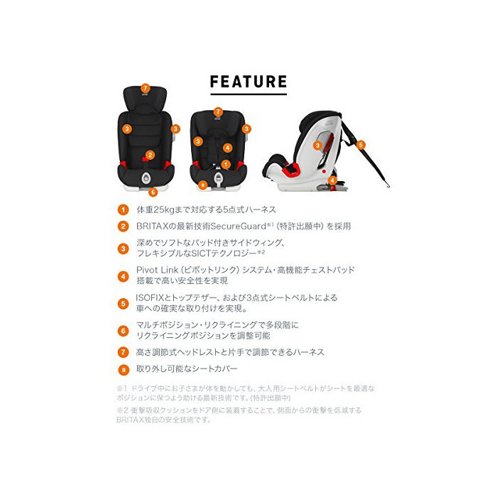 BRITAX독자 기술SICT탑재에 의해측면에서의 충격을 저감
