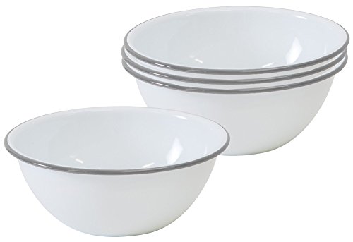 Enamelware - Set of 4 - Cereal Bowls - Solid White with Grey Rim