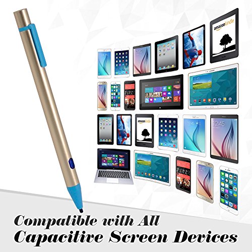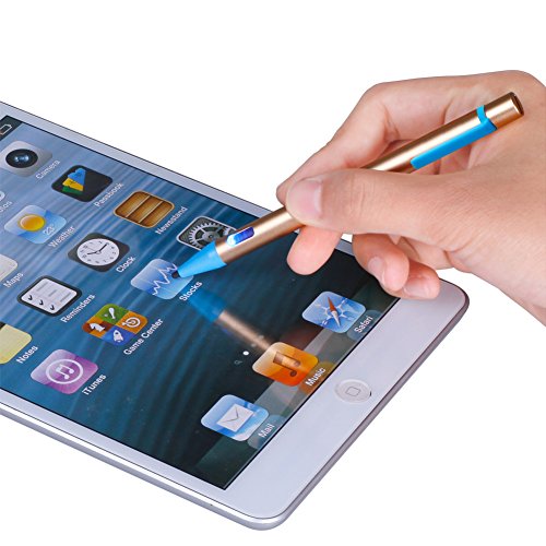 -. Feature : This simple stylus is excellent for the hard to pinpoint spots where a regular stylus or finger is to big. So easy to hold and write or draw, simple to use and it is nice-looking. / Stylus pen works perfectly on most capacitive devices and holds its charge for a long time. Come with replacement tip. Built-in battery and fast charging, 30 min charging for 12 hours using. / The pen is very easy to use and compatible with iPhone, iPad 1/2/3/4, iPad mini 1/2/3, and most Android tablets and smart phones. Please note it is not used on iPad air 2, iPad mini 4, iPad pro. / 2.3mm fine point stylus is charged via USB, with active sensing technology, Bluetooth or other connection device is not needed. Just press on/off. High precision stylus is light weight and portable. / The size of this unique stylus is about the length and width of a regular pen or pencil, which makes the writing experience feel much more natural.