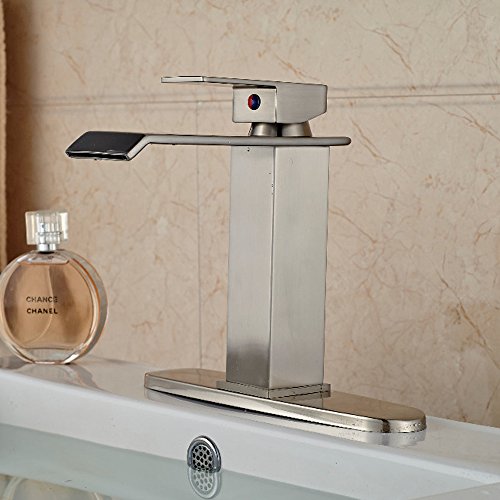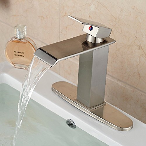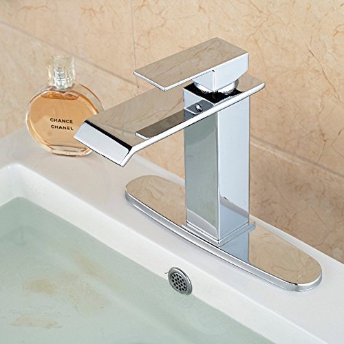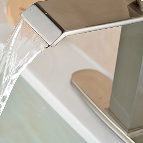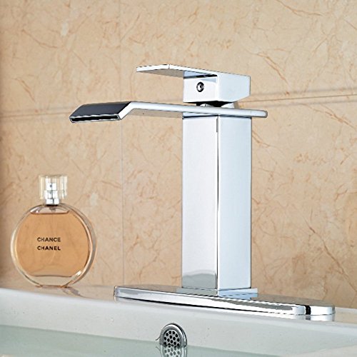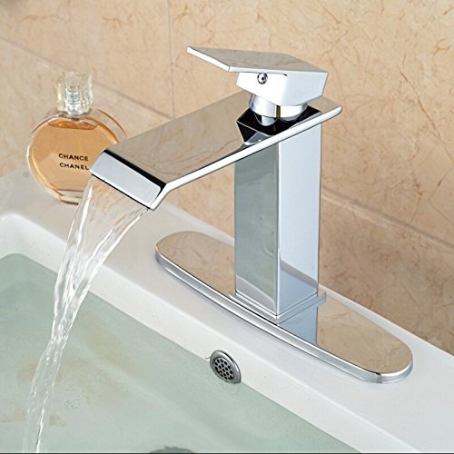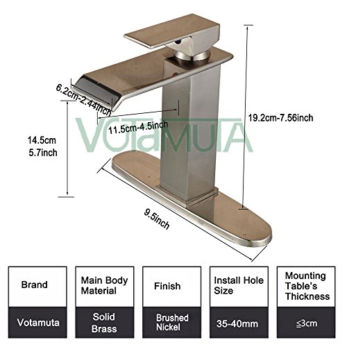 -. Title : Votamuta Single Handle Waterfall Bathroom Vanity Sink Faucet with Extra Large Rectangular Spout Lavatory Widespread Mixer Taps