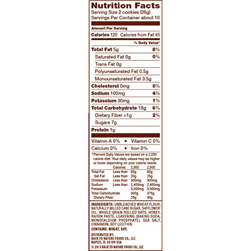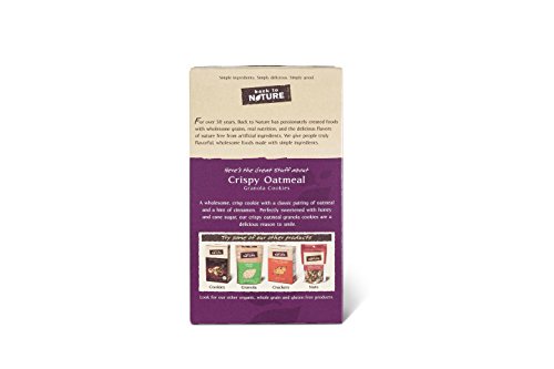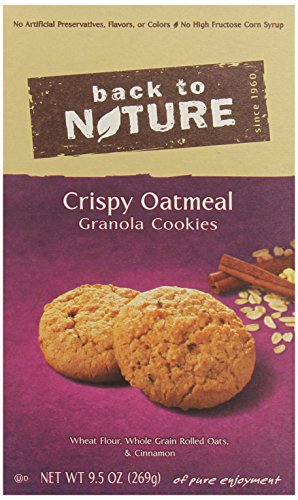 -. Binding : Grocery -. Brand : Back to Nature -. EAN : 0819898011063 -. Feature : A wholesome, crisp cookie with a classic pairing of oatmeal and a hint of cinnamon / Perfectly sweetened with honey and cane sugar / A wonderful treat you can feel good about sharing with your family / No high fructose corn syrup / No artificial preservatives, flavors, or colors -. Label : Back to Nature Company -. Manufacturer : Back to Nature Company -. Model : 12022p -. PackageQuantity : 1 -. ProductGroup : Pantry -. ProductTypeName : GROCERY -. Publisher : Back to Nature Company -. Studio : Back to Nature Company -. Title : Back to Nature Crispy Oatmeal Cookies, 9.5 Ounce -. UPC : 819898011063