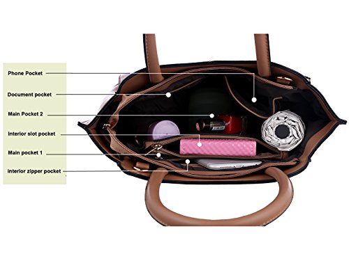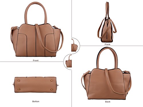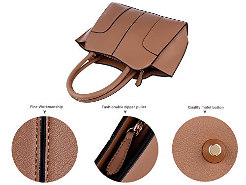 TZECHO , Women Top Handle Satchel Handbags , PU leather bags , Zip Closure Tote Shoulder Bag