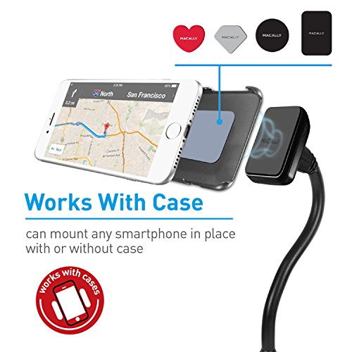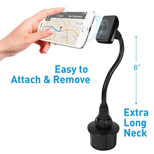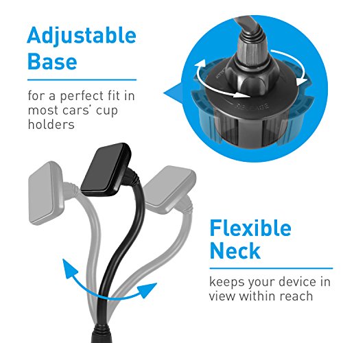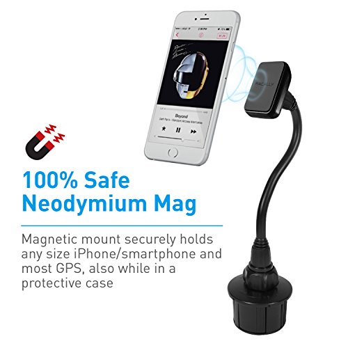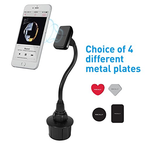 Macally Universal Magnetic Car Cup Holder Mount for for iPhone 7, 7 Plus, 6, 6 Plus, Samsung Galaxy, & Most Cell Phones with 4 Metal Sheets (MCUPMAG)