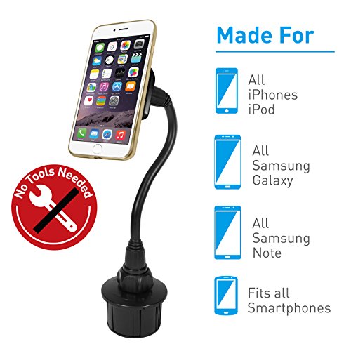 ADJUSTABILITY AND EASY ACCESS: With a 8" long flexible neck and a 360° rotatable holder, it allows for easy access to your phone without blocking your view of the road.