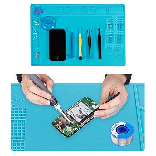 SAUNICE-blue Soldering Mat/Pad Silicone Heat Resistant Mat , Soldering Materials Electronics Mat Welding Blanket for Heat Gun,Soldering Iron,Soldering Station,Electronics Repair Mat 13.4" x 9"
