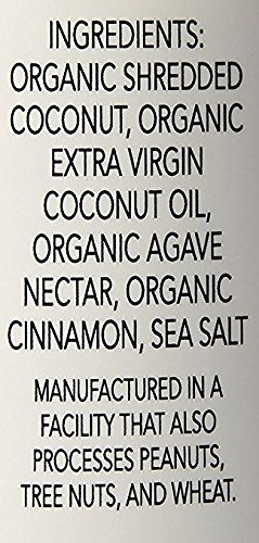 - ORGANIC & NATURAL INGREDIENTS - Organic Shredded Coconut, Organic Extra Virgin Coconut Oil, Organic Agave Nectar, Organic Cinnamon, Sea Salt