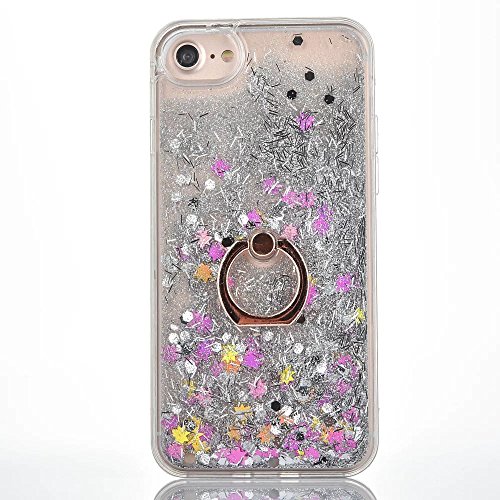 -. Title : JAZ Finger Ring Stand Quicksand Liquid Case,Ultra Thin Hard PC Back Soft TPU Bumper Transparent Plastic Case Floating Luxury Bling Glitter Sparkle Heart Case for iPhone