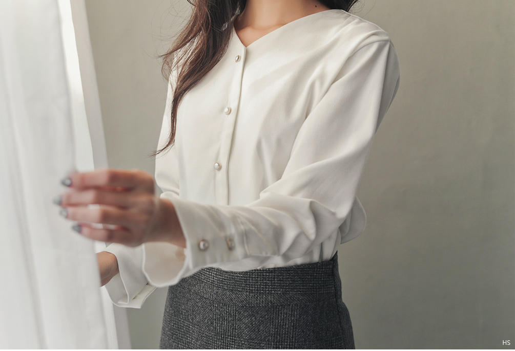 #ls8418 심플깔끔 진주버튼블라우스