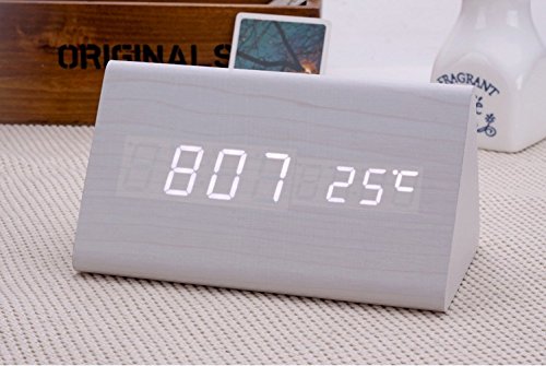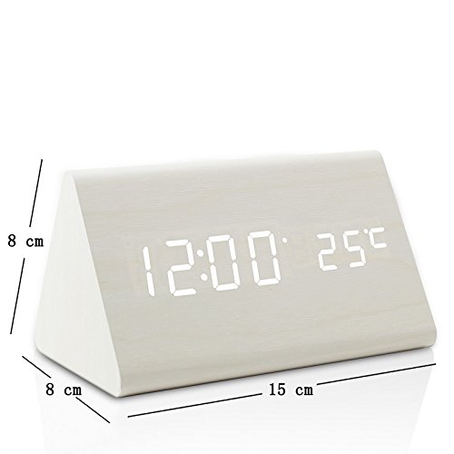 Specification: Display mode:Time / Temperature/Date Led Light Color: White Material: Wooden frame with fine grain Dual Power Supply: DC 5V-6V input or AAA battery,Pc USB port is available (Suggest to use USB cable) Time display: 12-hour or 24-hour mode Temp display: °C/°F display of thermometer Alarm: Alarm Clock with "beep" lasting for 1 minute(set three sets of alarm) Dimension: 5.9*3.1*3.1 inches Weight: 9.17 ounces