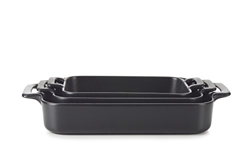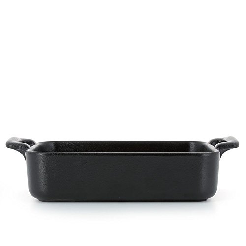 REVOL SET03BC002 Culinary Porcelain Rectangular Roasting Dishes Black, Cast Iron Style