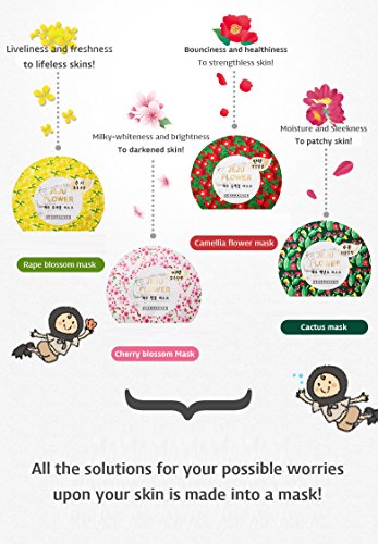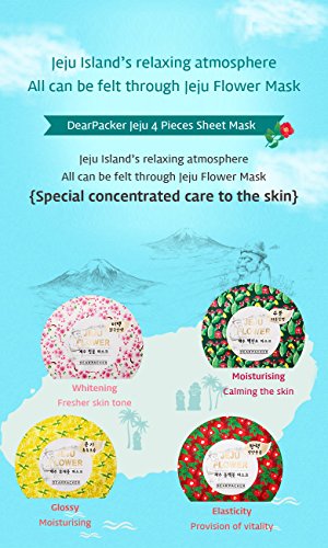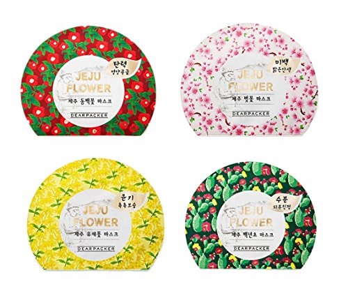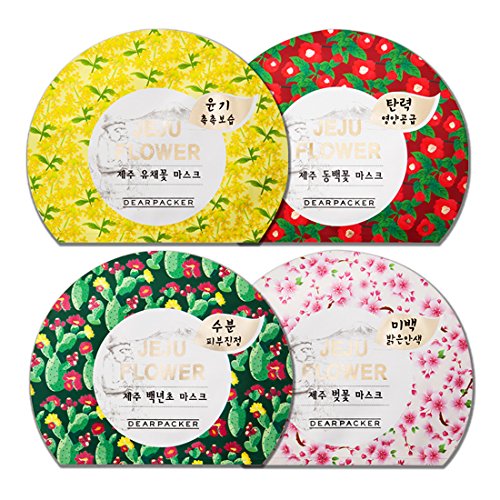 -. Feature : [DearPacker] Jeju Flower Mask Sheet 4Pcs -Cherry Blossom, Camellia, Cactus / For All skin types / Sensitive skin? Not to worry. 100% pure cotton-made mask sheets / NO paraben, minral oil, Talc, Triethanolamine, Triclosan