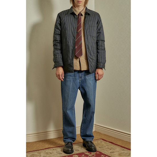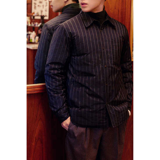 - 세로 스트라이프 패턴의 남성 셔츠형 점퍼.