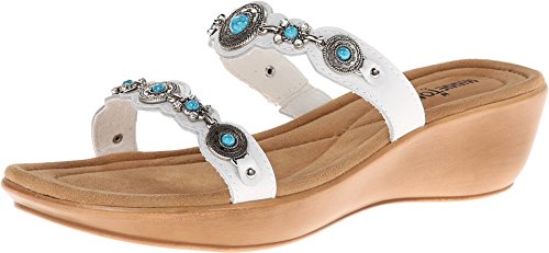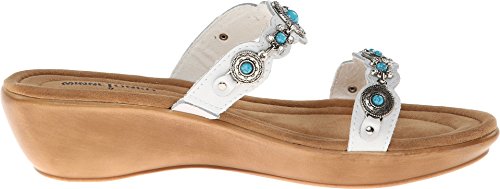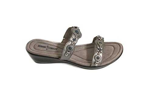 Slide sandal with rhinestone studding and silver-tone hardware at straps Elastiziced goring at vamp strap Brand : Minnetonka Item model num : Boca Ii Slide MPN(PartNumber) : 70211-WHT EAN : 0887449044501 Product Dimensions(LxWxH) : 34x21x16cm ; 839 g