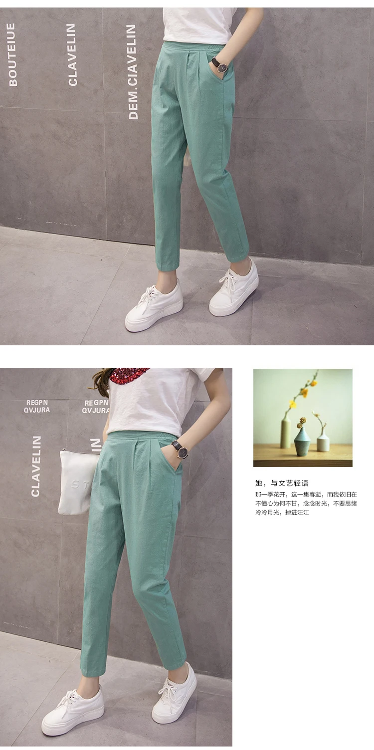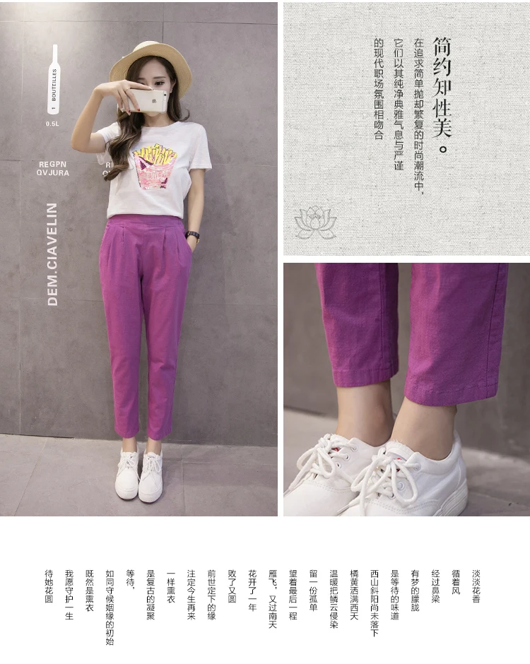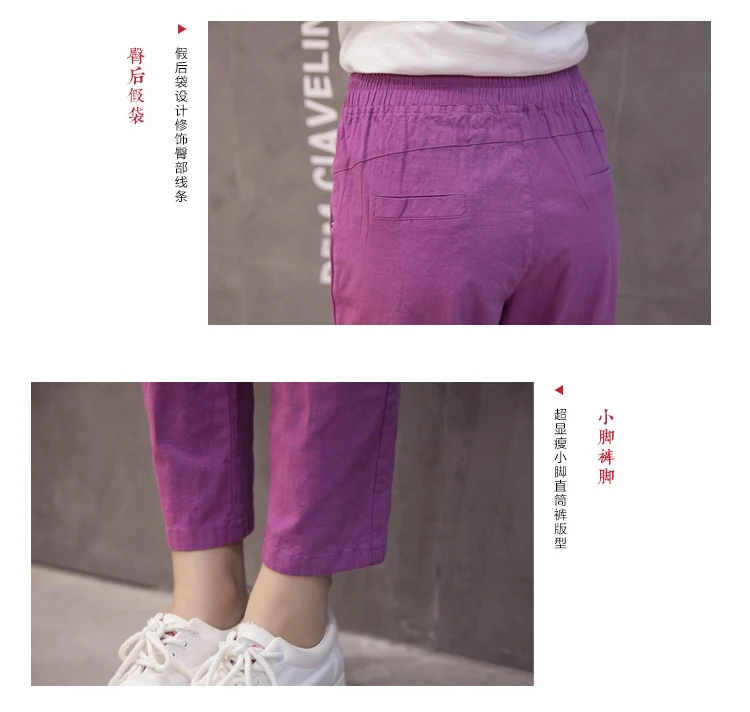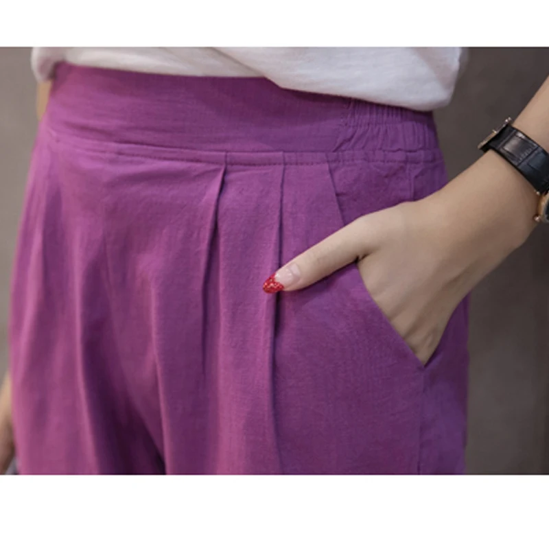 Style:Slim,Plus Size,Capris,Cotton Linen,Candy Colors,Harem Pants