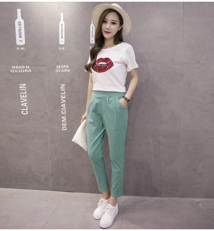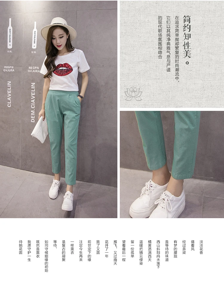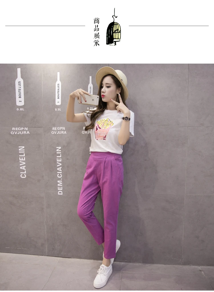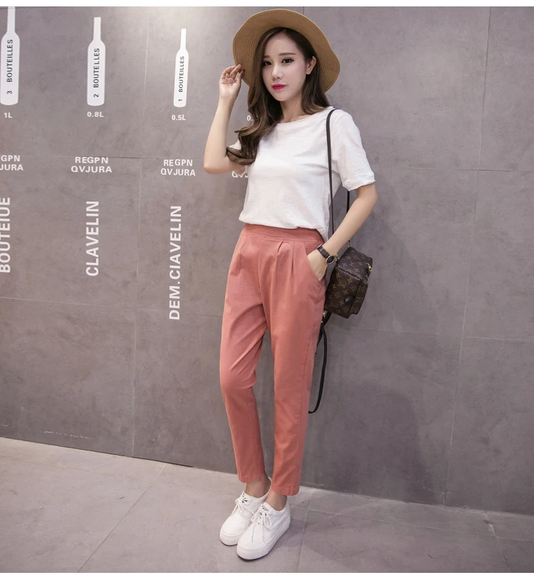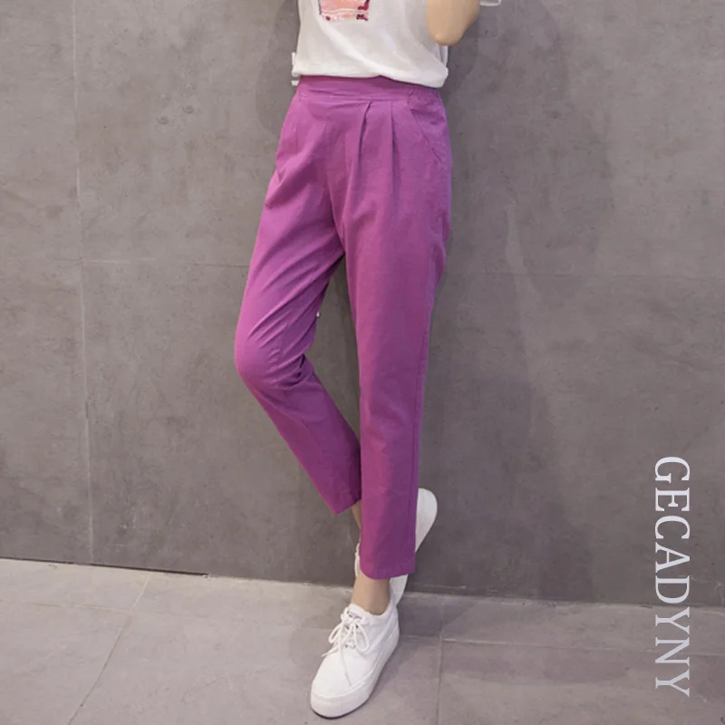 Style:Slim,Plus Size,Capris,Cotton Linen,Candy Colors,Harem Pants