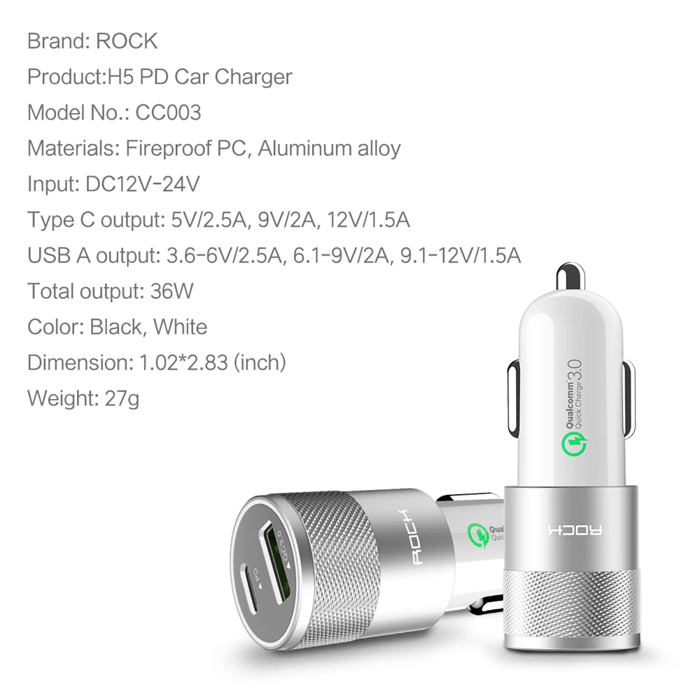 feature 7:36W USB Car Charger Type C Charger