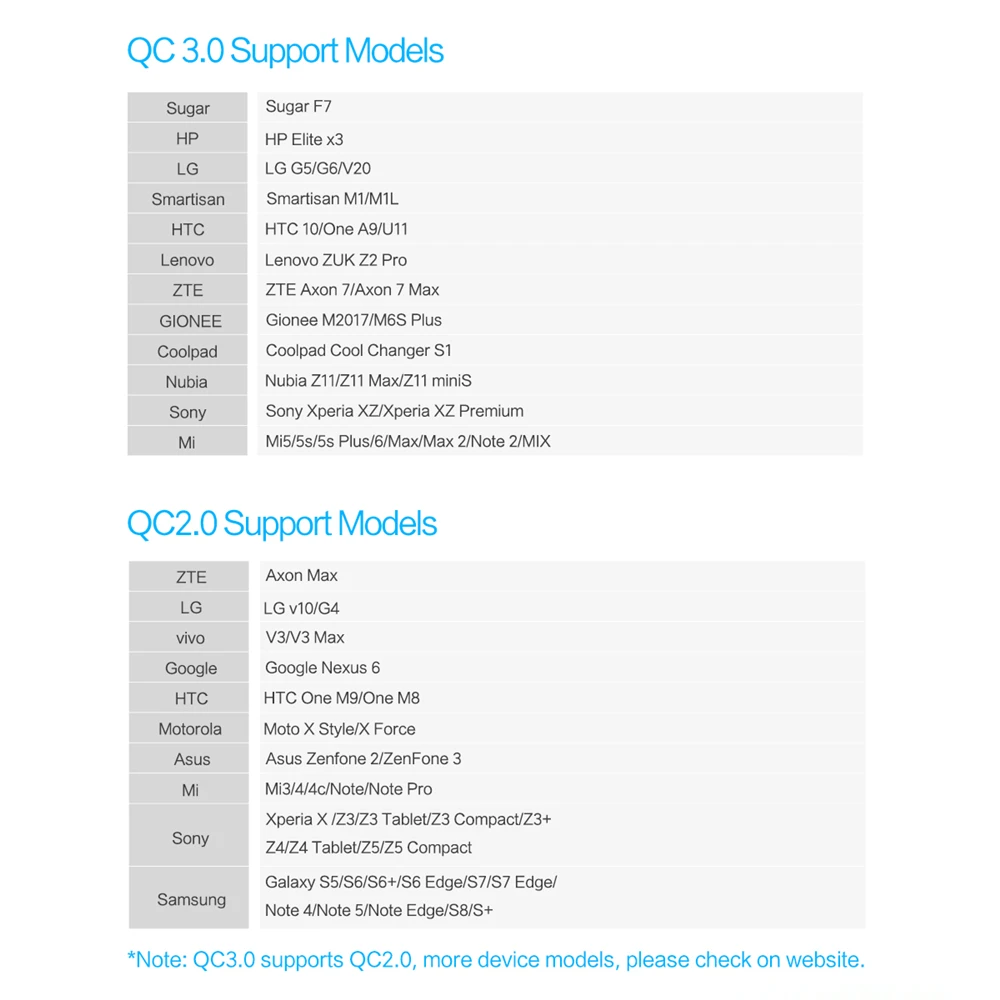 feature:QC 3.0 Quick Charge for Samsung for Xiaomi