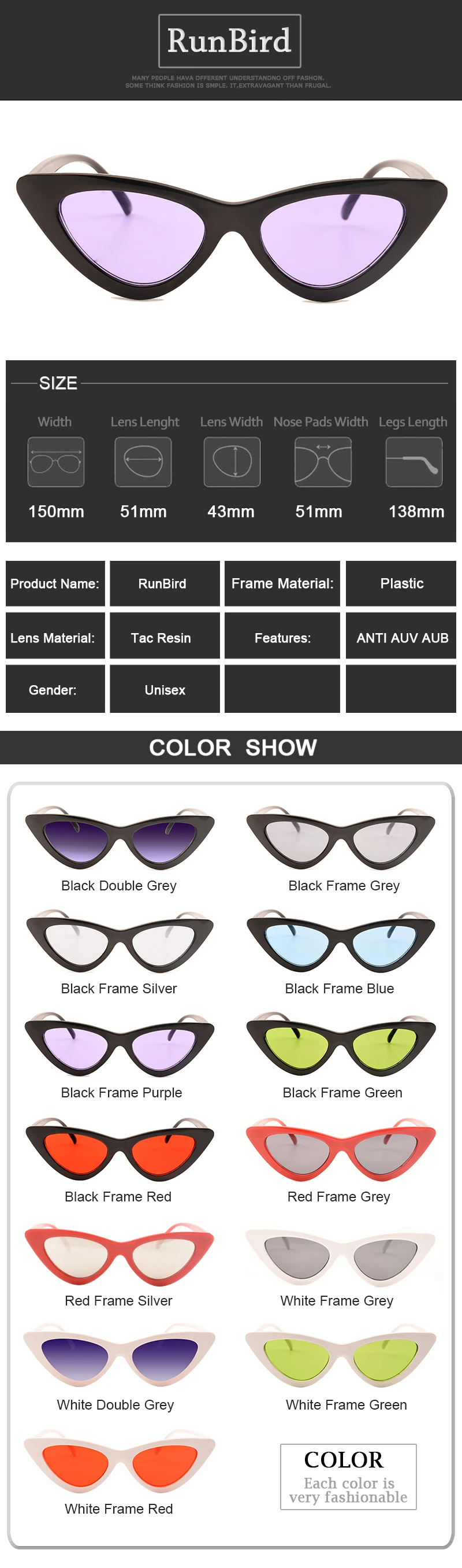 Sunglasses Function:UV400 Protection Against Harmful UVA/UVB RAYS
