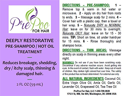 Hot Oil Treatment by PrePoo For Hair - Coconut / Tea Tree Hair Care Treatment for Dry Damaged Hair -Reduces Breakage, Shedding, Thinning, Itchy Scalp - Pre-Shampoo Therapy - All Natural Product, 2oz