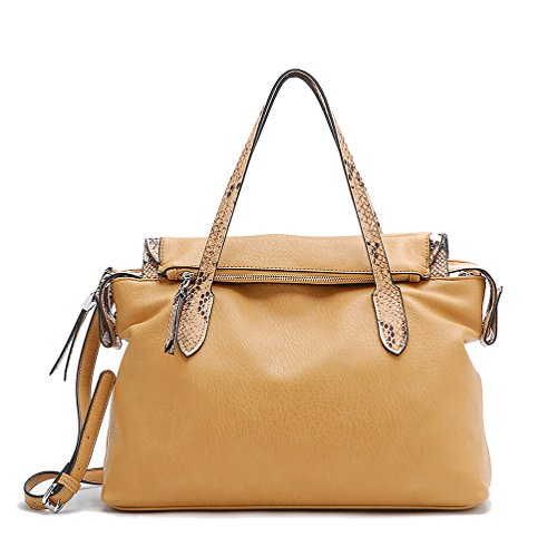 Made synthetic leather with silver-tone hardware. Dual carrying handles with detachable shoulder strap. Zip top closure. Spacious fully lined fabric compartment. Interior zip and slip pockets. BEFORE PURCHASING, PLEASE COMPARE THE SIZE OF THIS HANDBAG TO ONE OF YOUR OWN FAVORITE BAGS.Feature