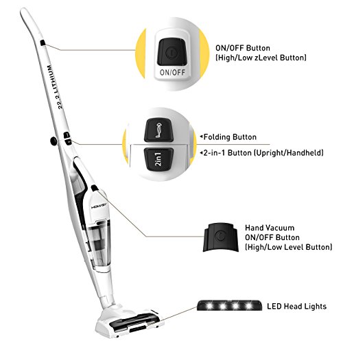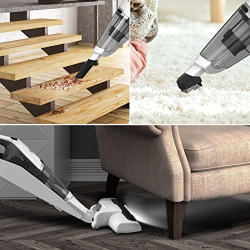 2-in-1 Cordless Vacuum. Highly-maneuverable stick vacuum cleaner are ideal for light-duty clean-ups around the home. Normal brush, crevice nozzle, stiff brush and easy-off detachable handheld help easily do cleaning dust and garbage of car interiors, furniture, stairs, and other hard-to-reach spots.