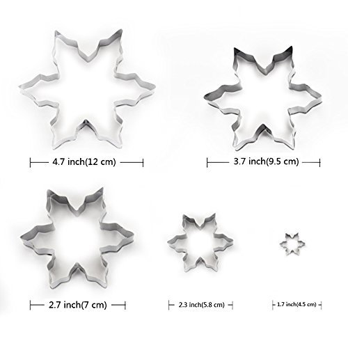 - Snowflake Shaped Cookie Cutter Set: Cookie cutter shapes is snowflake, 5 different sizes snowflake cookie mold.