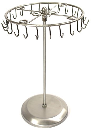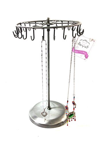 -. Title : Antique Silver Color 24 Hooks Rotating Necklace Holder Jewelry Organizer Display Stand