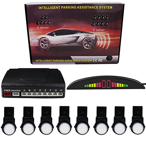 KIPTOP LED Display with 8 Parking Sensors, Car Vehicle Reverse Backup Radar System for All Cars (White)