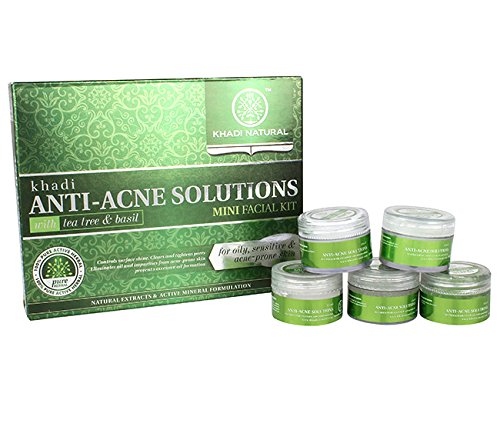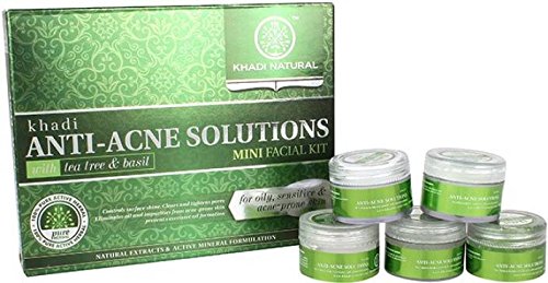 Khadi Natural Ayurveda Anti-Acne Solutions Mini Facial Kit controls surface shine. With regular use, the kitcontents helps to clear and lightens pores, eliminate oil and impurities from acne-prone skin, and prevent excessive oil formation.