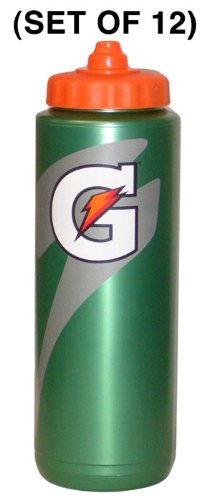 Studio : Gatorade Publisher : Gatorade Binding : Misc. Product Description Convenient and attractive green squeezable plastic bottles. See-thru strip on side lets you see how much Gatorade is left. New dispenser tip includes one-way valve, just squeeze bottle to drink. Each bottle holds 32 fluid ounces of Gatorade. Set of 12. 0