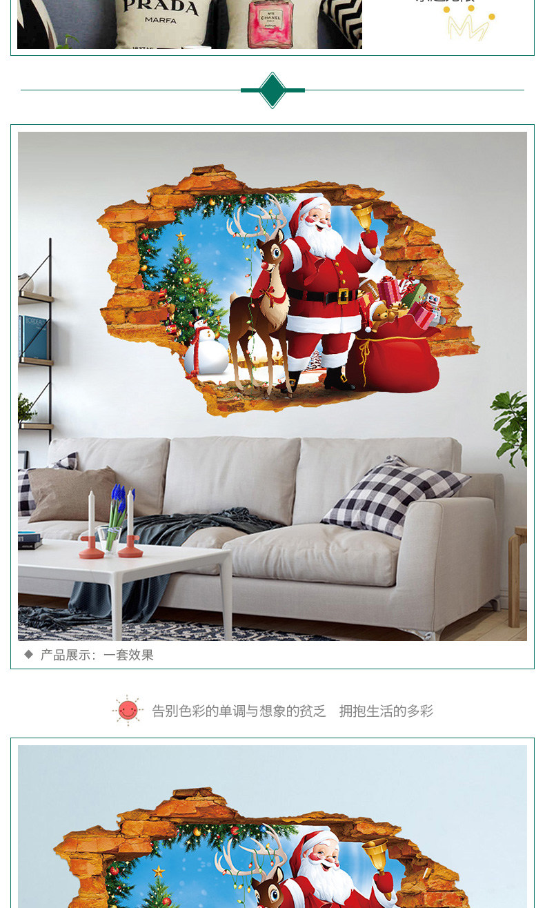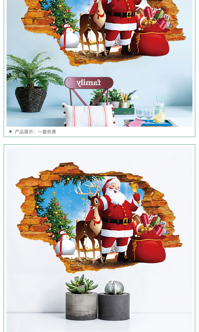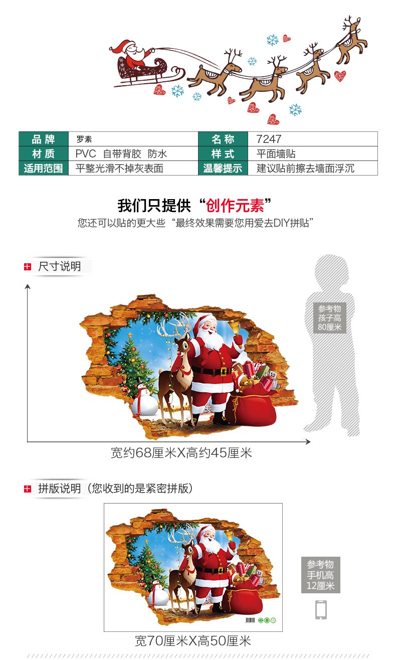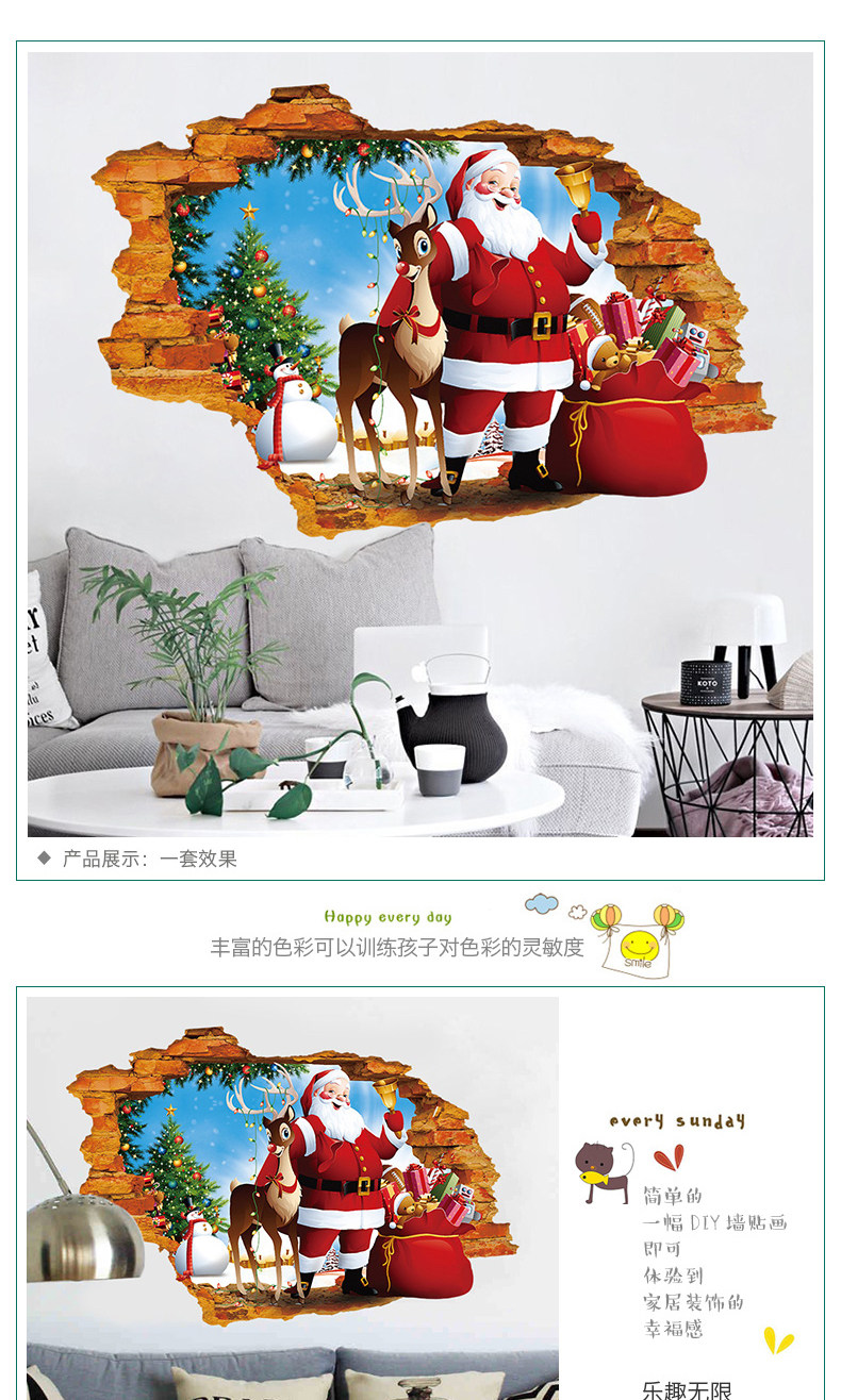 卡通创意圣诞老人麋鹿贴纸卧室客厅房间墙壁窗户玻璃壁纸贴纸贴画