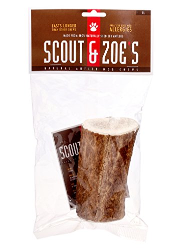 -. Binding : Misc. -. Brand : Scout and Zoe's -. Color : NA -. EAN : 0609722995504 -. Feature : Made in USA / All Natural / No chemicals / Shed Antlers / Source of natural calcium -. Label : Fido Pet Products -. LegalDisclaimer : Always supervise your pup when she is enjoying a Scout & Zoe's chew. When the chew becomes too small, please discard and purchase a brand new one! -. Manufacturer : Fido Pet Products -. Model : SZA-5504 -. MPN : SZA-5504 -. NumberOfItems : 1 -. PackageQuantity : 1 -. PartNumber : SZA-5504 -. ProductGroup : Pet Products -. ProductTypeName : PET_SUPPLIES -. Publisher : Fido Pet Products -. Size : X-Large -. Studio : Fido Pet Products -. Title : Scout and Zoe's Extra Large Antler for Dogs -. UPC : 609722995504