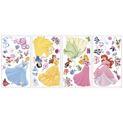 The joy and magic of the Disney Princesses can now be brought into your room with this beautiful set of wall stickers. Featuring Ariel, Tiana, Cinderella, and the rest of your favorite princesses, these charming decals are the perfect thing to dress up the bedroom of your own little princess. Includes 47 sparkling peel & stick gems perfect for dressing up the decals, or adding flair to mirrors, furniture, accessories, and more. Pairs perfectly with our Disney Princess wall borders or giant Disney Princess wall decals!