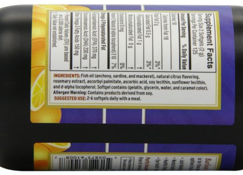 -. Title : Barlean's Organic Oils Fresh Catch Fish Oil, Omega-3, Orange Flavor, 250-Softgels each