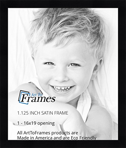 -. Binding : Misc. -. Brand : ArtToFrames -. Color : Black -. Feature : Comes with Regular Glass and a sawtooth hanger for wall mounting / Made of Wood - this one of a kind custom picture frame will enhance any piece of art you put in it / For other colors and standard sizes in this frame style search 'WOM20020-4x6' on amazon.com / Fits 16x19 inch Photos Actual Frame size (finished size) is 17.75x20.75 inches and the frame is 1.125 inches wide. Please Note: Actual color and wood grain may vary depending on the cut of wood and wood color. / This medium width frame with a satin finish is great for showcasing your photos in your home office or gallery. The clean finish of this frame allows your art to be the focus. Your photographs will look clean and effortless in this classic frame. -. Label : ArtToFrames -. Manufacturer : ArtToFrames -. Model : 2WOM20020-16x19 -. MPN : NM-16x19-20020-1 -. NumberOfItems : 1 -. PackageQuantity : 1 -. PartNumber : NM-16x19-20020-1 -. ProductGroup : Home -. ProductTypeName : HOME -. Publisher : ArtToFrames -. Size : 16 x 19" -. Studio : ArtToFrames -. Title : ArtToFrames 16x19 inch Satin Black Wood Picture Frame, 2WOM20020-16x19 -. Warranty : 30 day money back guarantee, for damages during shipping all packaging must be saved for claims