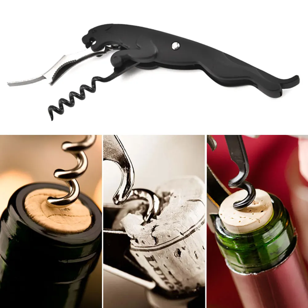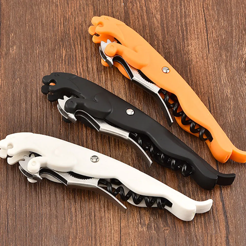 Multi-Function Wine Beer Bottle Cap Opener Leopard Corkscrew Cork Screw Stainless Steel Metal With Plastic Handle For Home Party