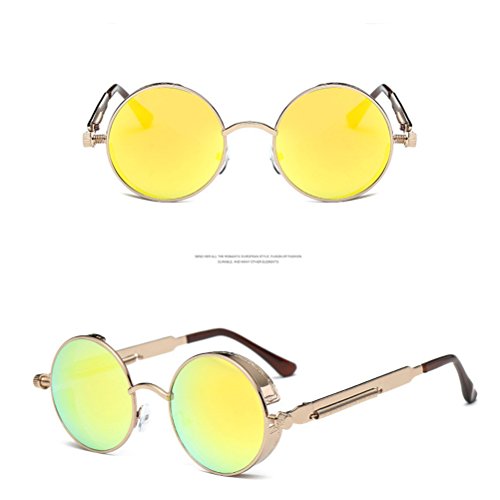 Package Including 1 * Round Flat Mirror Sunglasses Fshion Vintage Sunglasses Women Men Glasses (Bronze Franwork with Yellow Lens) 0