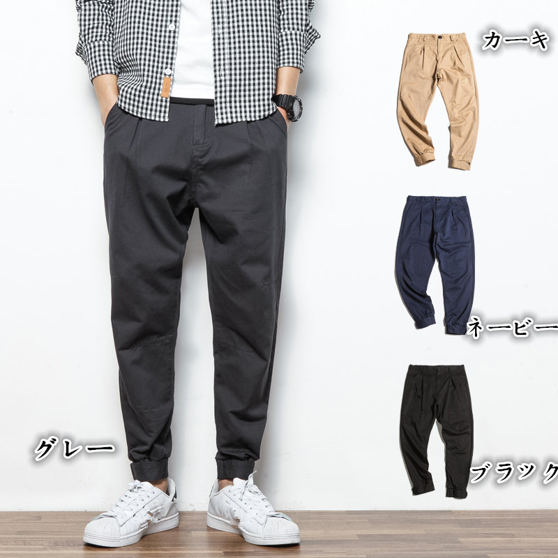 商 品 名 :メンズ ジョガーパンツ カジュアル ジョグパンツ 無地 グレー ブラック カーキ ネービー 裾ゴム ロングパンツ テーパードパンツdy084w3
