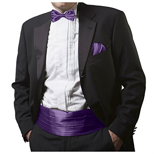 -. Title : GASSANI Eggplant Men's Shiny Satin Cummerbund, Pretied Bow Tie & Pocket Square