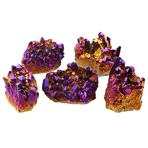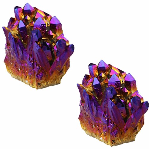 rockcloud Natural Titanium Coated Crystal Quartz Purple Cluster Geode Druzy Home Decoration Gemstone Specimen Pack of 2